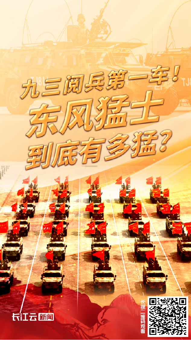 上午9點58分,東風猛士搭載80面抗戰(zhàn)英模旗幟來到天安門廣場受閱
