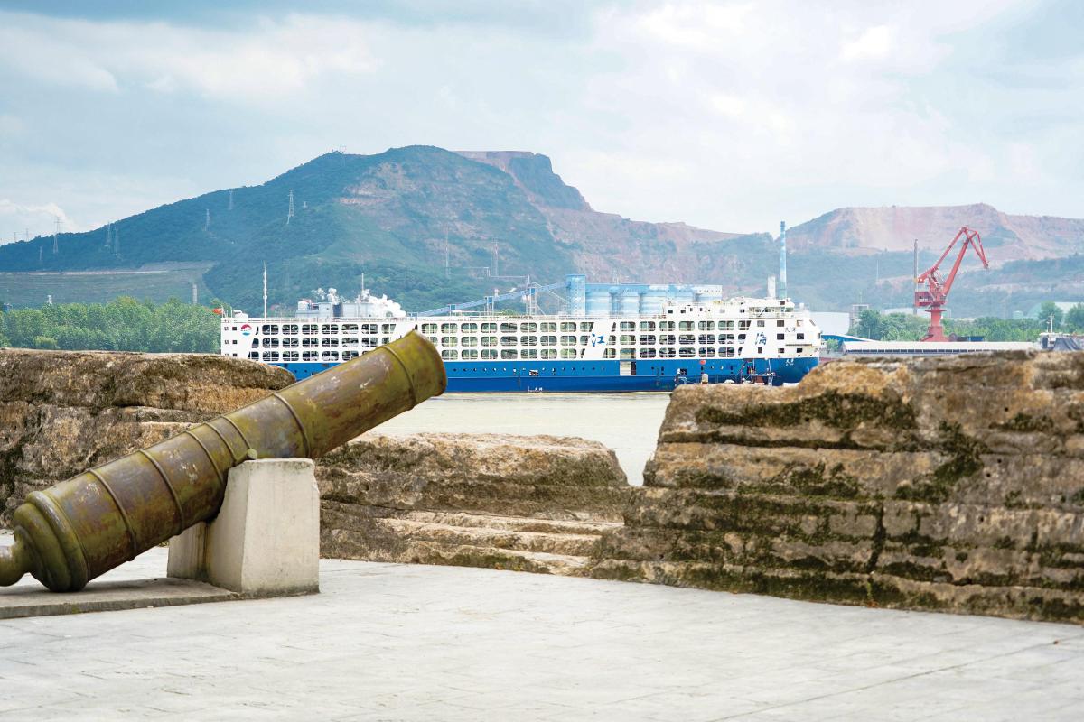 這里孤峰昂舉,懸崖如削,突兀江心,屹如關(guān)隘,最窄處與對(duì)岸的田家鎮(zhèn)相距不到500米,扼控長(zhǎng)江上下,加上下游的富池口,互為犄角,有“楚江鎖鑰”之稱。