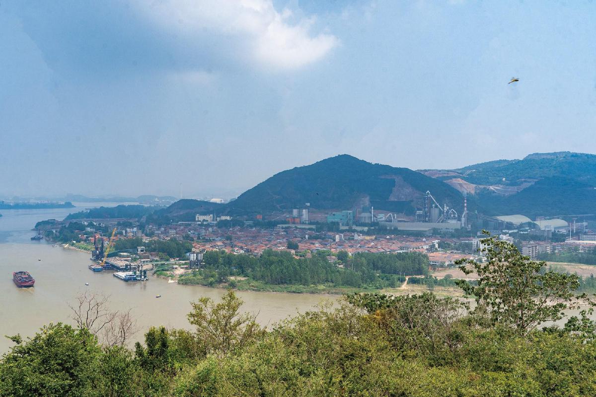 登山遠(yuǎn)眺,長(zhǎng)江煙波浩渺,航道船舶來(lái)往不斷。滾滾江水對(duì)面,田家鎮(zhèn)清晰可見。