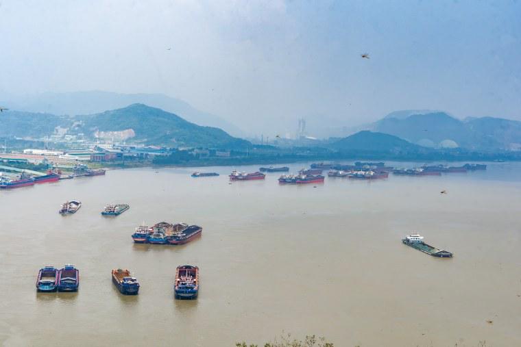 登半壁山遠(yuǎn)眺,長(zhǎng)江煙波浩渺,航道船舶來(lái)往不斷
