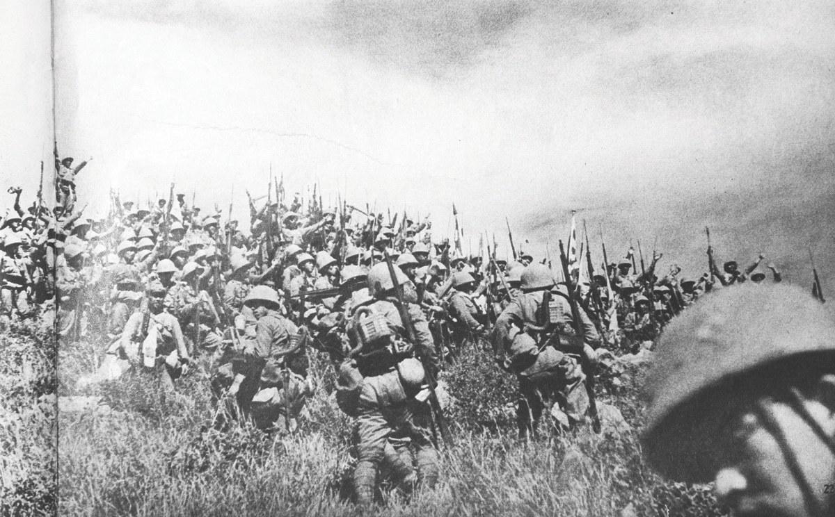 半壁山失守。日軍記者鏡頭下的日本侵略者,在我國(guó)土上歡呼,我國(guó)國(guó)民在血與火中哭泣。