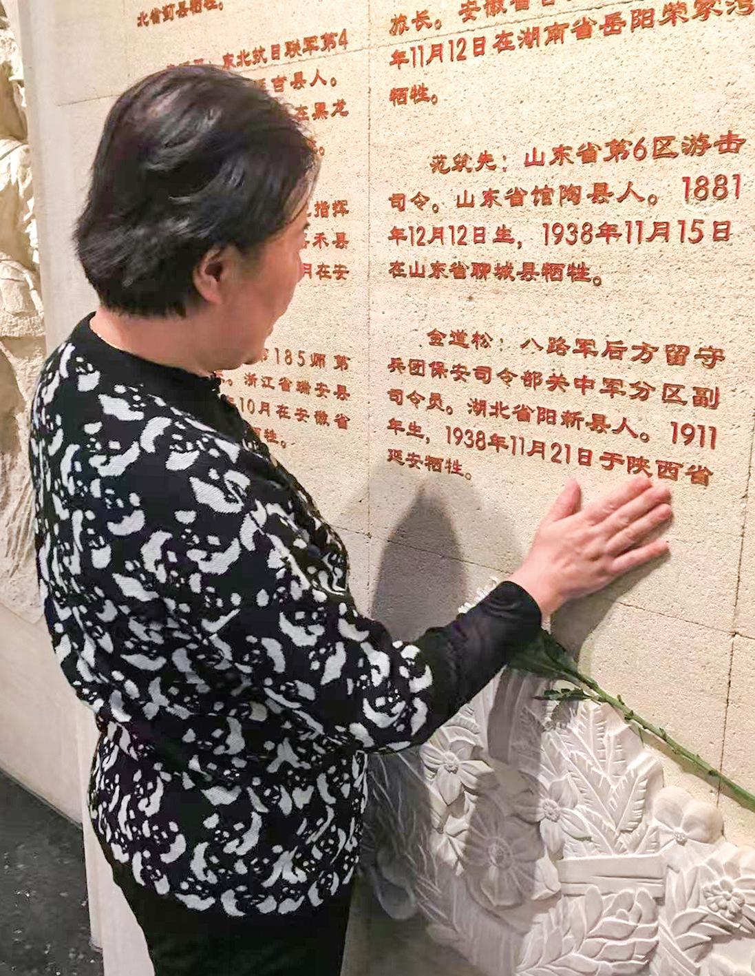 中國人民抗日戰(zhàn)爭紀(jì)念館的烈士紀(jì)念墻上記載著金道松的信息(受訪者提供)