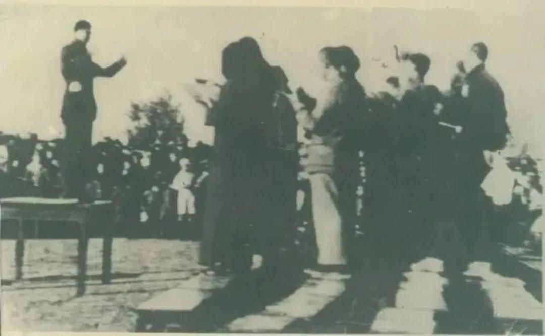 同年12月8日,寒風(fēng)中的冶雄體育場(chǎng)卻熱氣蒸騰。“港窯湖各界民眾救亡歌詠大會(huì)”在這里舉行,5000雙眼睛緊盯著臨時(shí)搭建的舞臺(tái),四周“誓死抗日”的標(biāo)語(yǔ)在朔風(fēng)中獵獵作響。