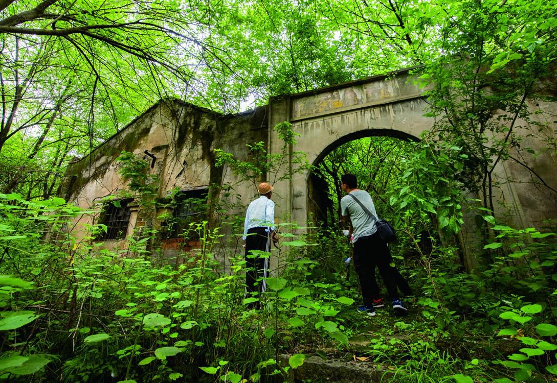在熊忠武的帶領(lǐng)下,記者來(lái)到黃荊山腳下,沿著云霧洞旁蜿蜒的公路向上攀登,只見(jiàn)三個(gè)幽深的山洞掩映在一片雜草叢中。漆黑的山洞中有一塊厚實(shí)的大石塊,熊忠武說(shuō):“這就是高空索道的轉(zhuǎn)揚(yáng)機(jī)底座?!?/p>